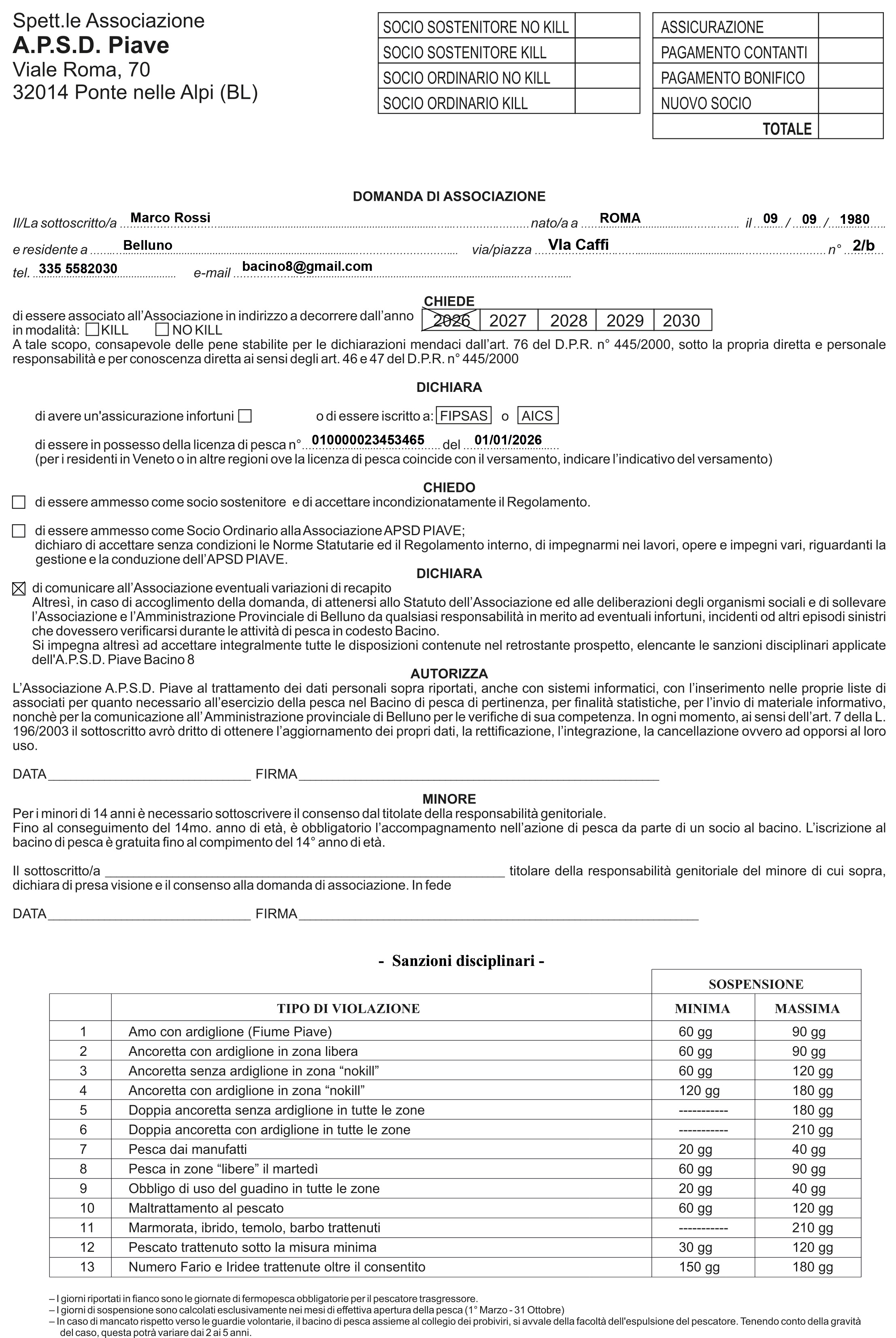 Per diventare socio del Bacino di Pesca n. 8 “Piave”, segui i passaggi riportati di seguito per scaricare и compilare la documentazione necessaria.